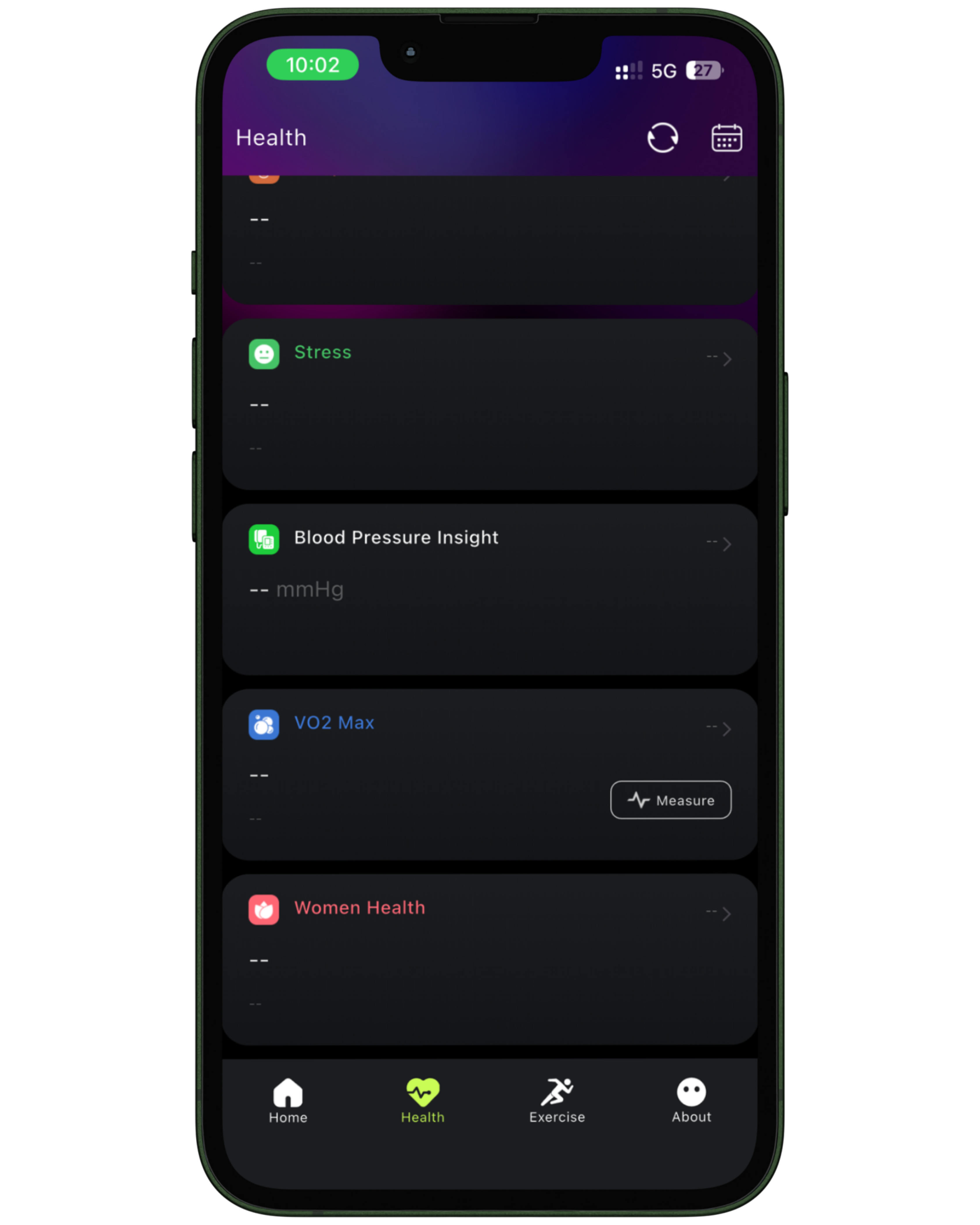 • HRV, fréquence cardiaque, sommeil, stress, température corporelle, activité physique
